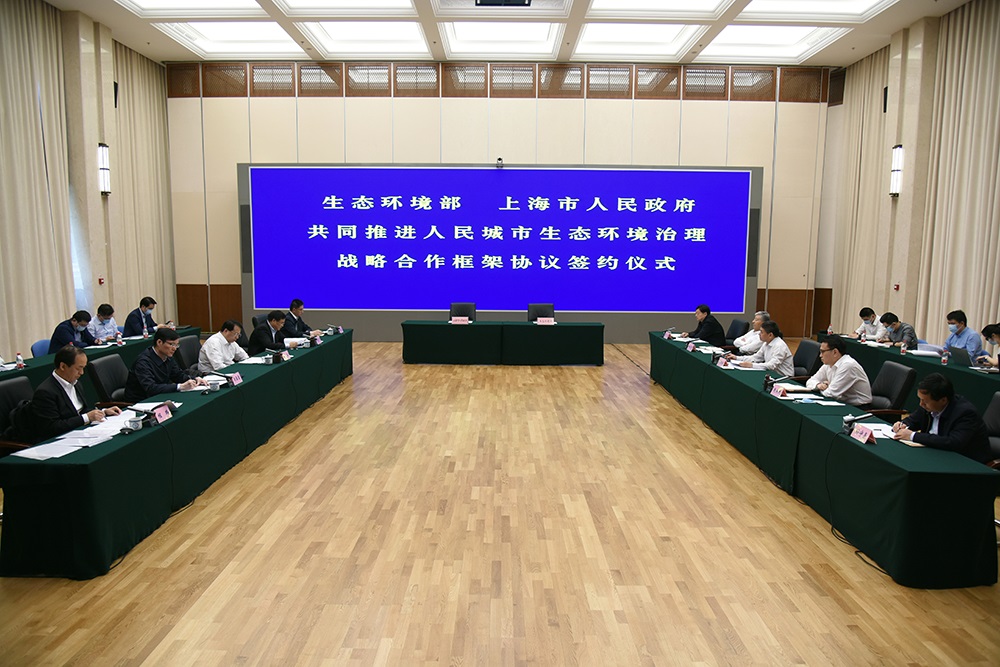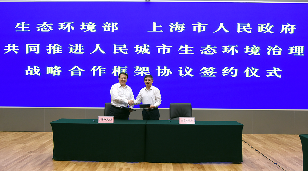 6月1日,生态环境部与上海市人民政府在京签署共同推进人民城市生态环境治理战略合作框架协议。生态环境部部长黄润秋,上海市委副书记、市长龚正出席协议签署仪式并讲话。